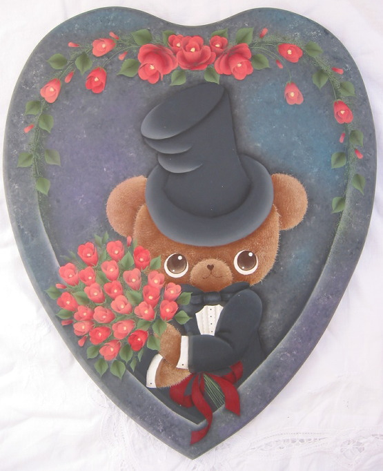 2005リバレインカントリーカーニバルのセミナー作品です。 この日は暑かったり夕方からは雨になったんで会場が異常に暗かったりで 絵の具は直ぐ乾くし暗くて目が痛くなったりで今回も?!過酷な条件でした(笑) 薔薇の色が乗らなくって何度も乾かしながら重ね描きしました。 くまがい先生としては・・・この色を出したかったのだとか。。。 わたしだったらきっと さっさと他の色に変えて塗るだろうな〜あはは。 会場ではなかなか筆が進まなかったので家で大部分仕上げました。